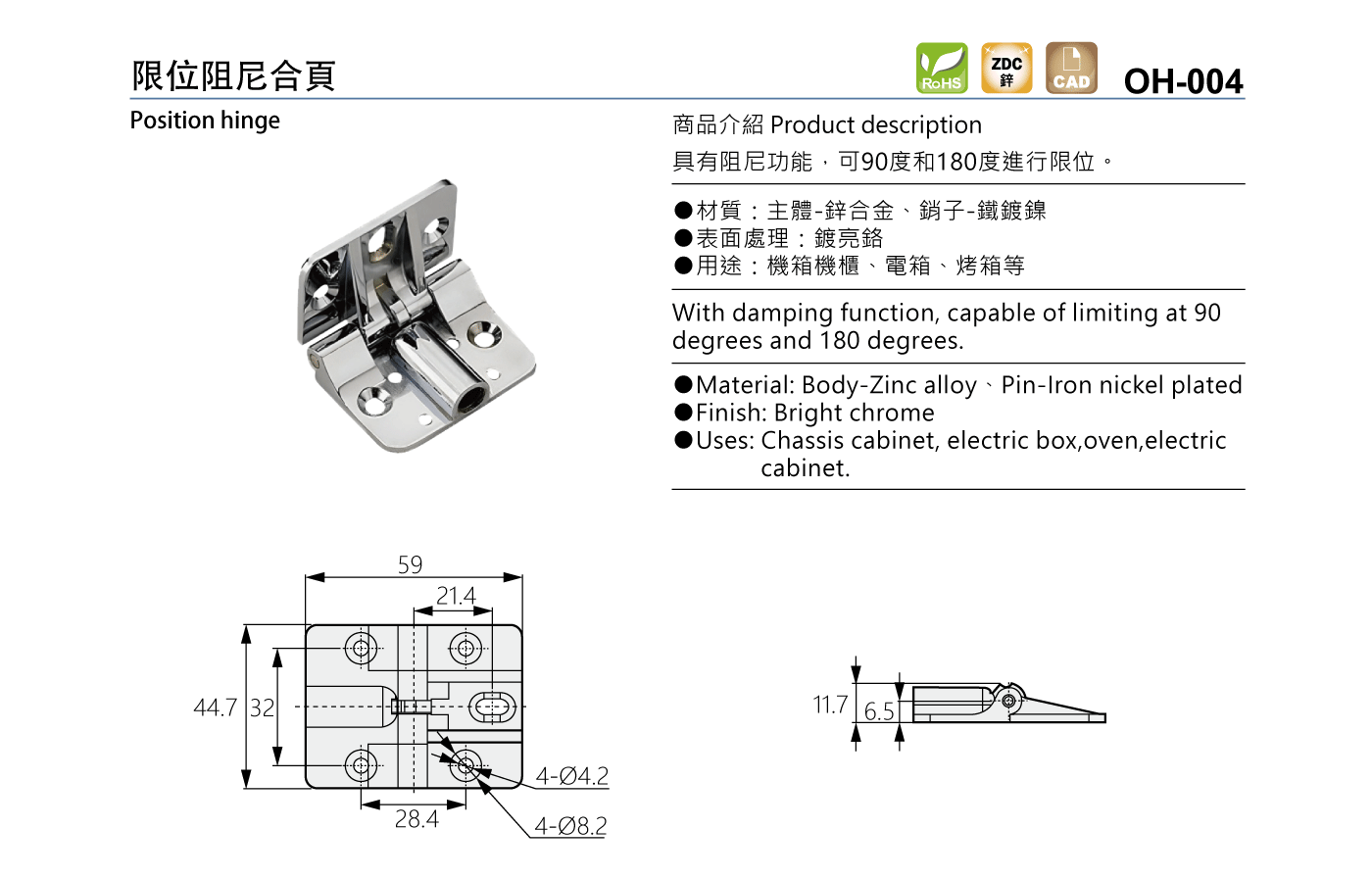 - 材質:主體-鋅合金、銷子-鐵鍍鎳
