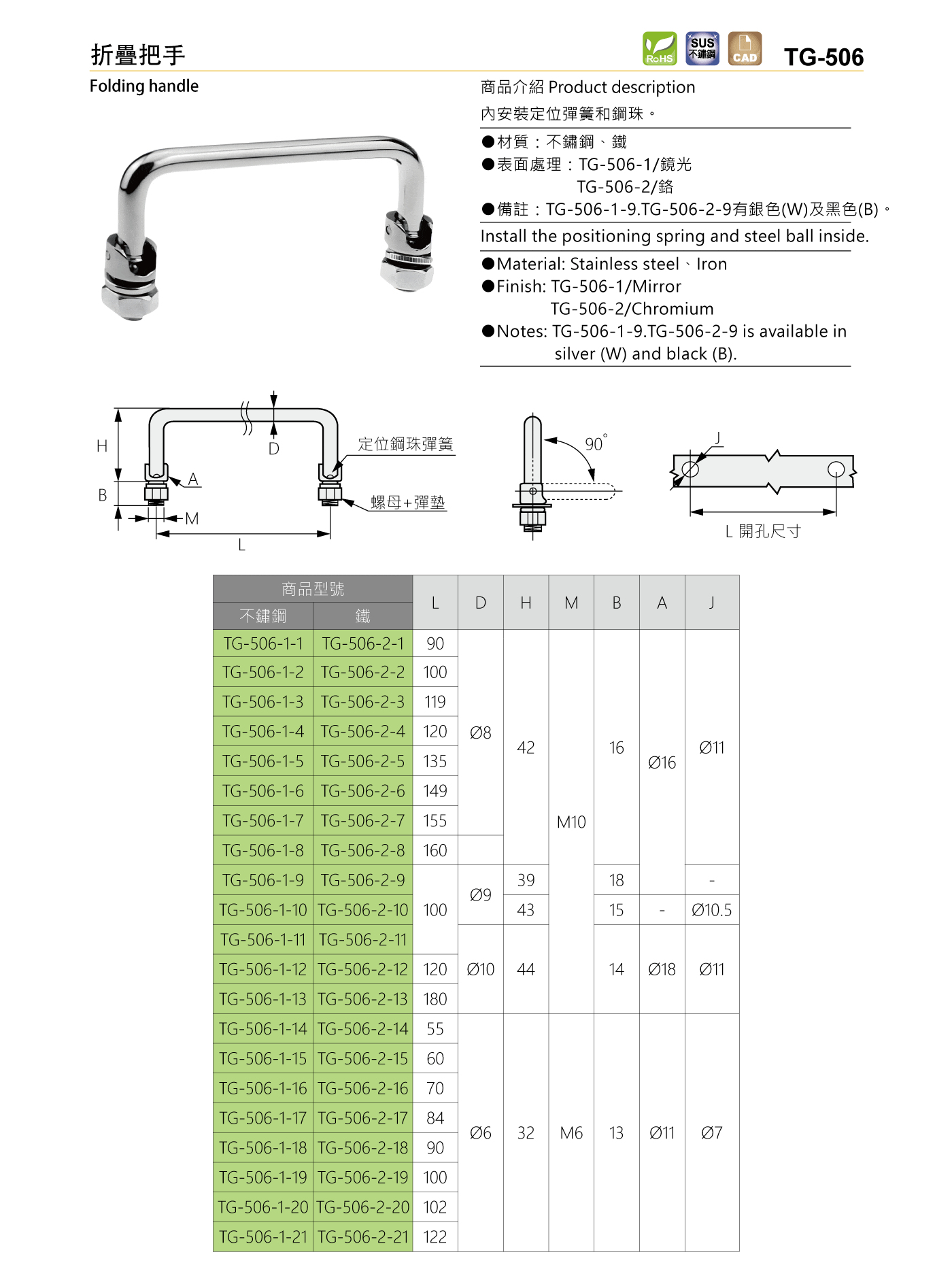 - 表面處理:TG-506-1/鏡光、TG-506-2/鉻